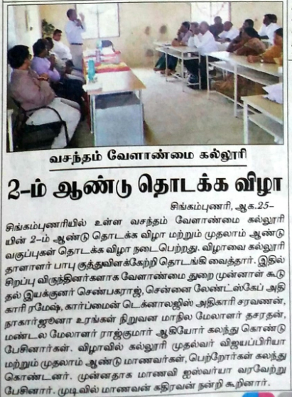Vasantham agrucultural institute has celebrated the open day of academic year 2019-2020 with students and their parents.